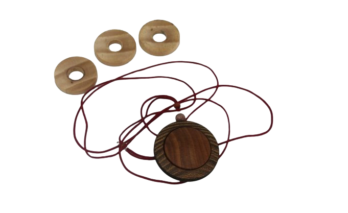Comprend : le diffuseur corporel en bois, une lanière réglable et les recharges de bois de tilleul