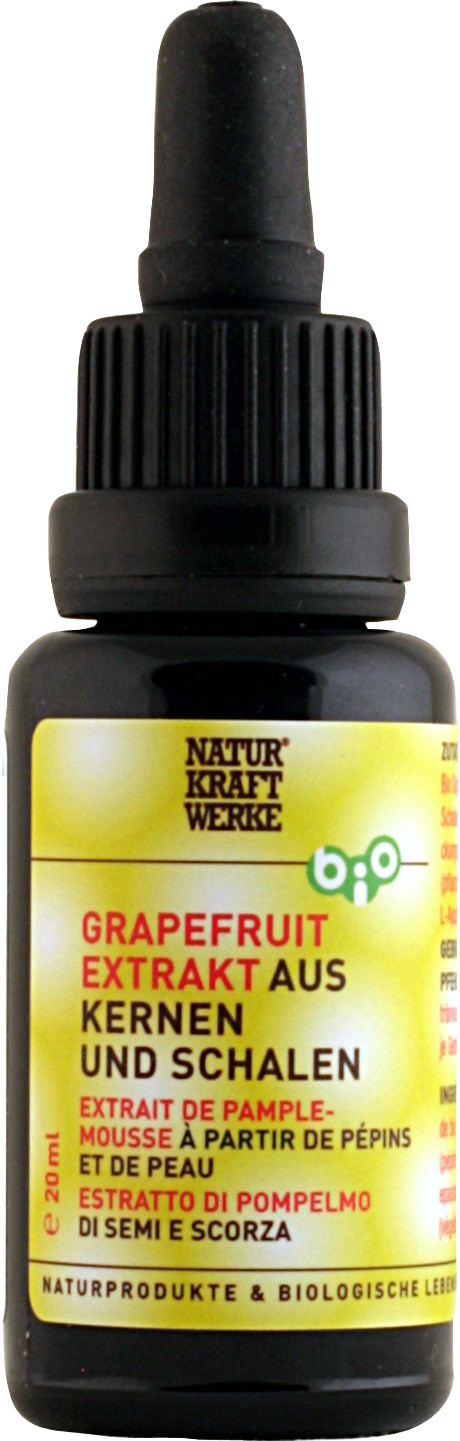 L'extrait de pépins de pamplemousse de NaturKraftWerke® est fabriqué à partir de pamplemousses frais et entiers des variétés particulièrement riches en pépins. Il s'agit d'un produit 100% naturel issu de l'agriculture biologique contrôlée.